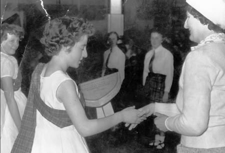 The above photograph is of the presentation of a plaque for Scottish Country Dancing to pupils from the school. It looks like it was taken in the school gym.